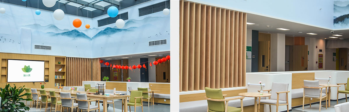 瑞小满·万圣康养中心是为认知障碍的长辈,提供失智照护服务,项目设有康复理疗区,日间照料中心,医务室,活动区、适老化餐厅等,以营造友好的理疗环境,打造多感官互动体验,实施“非药物疗法”,让长辈回归生活。依托完善的失智照护培训体系,打造专业失智照护团队,通过失智照护特色服务,结合非药物疗法、温馨理疗环境、个性化定制餐食及家属参与支持,延缓失智进程,减少异常行为,提高日常生活能力。